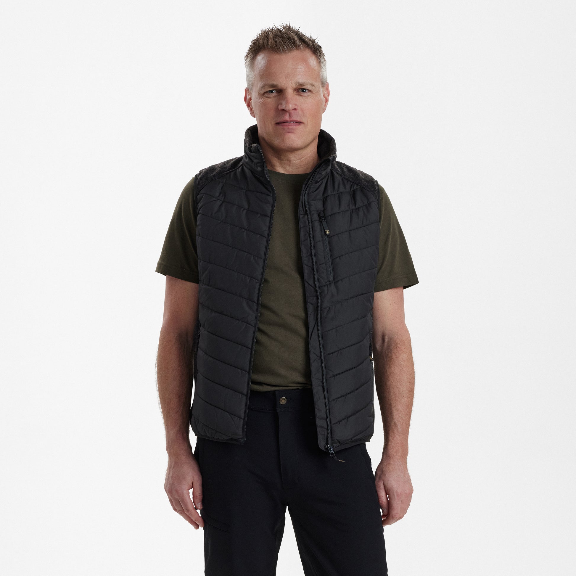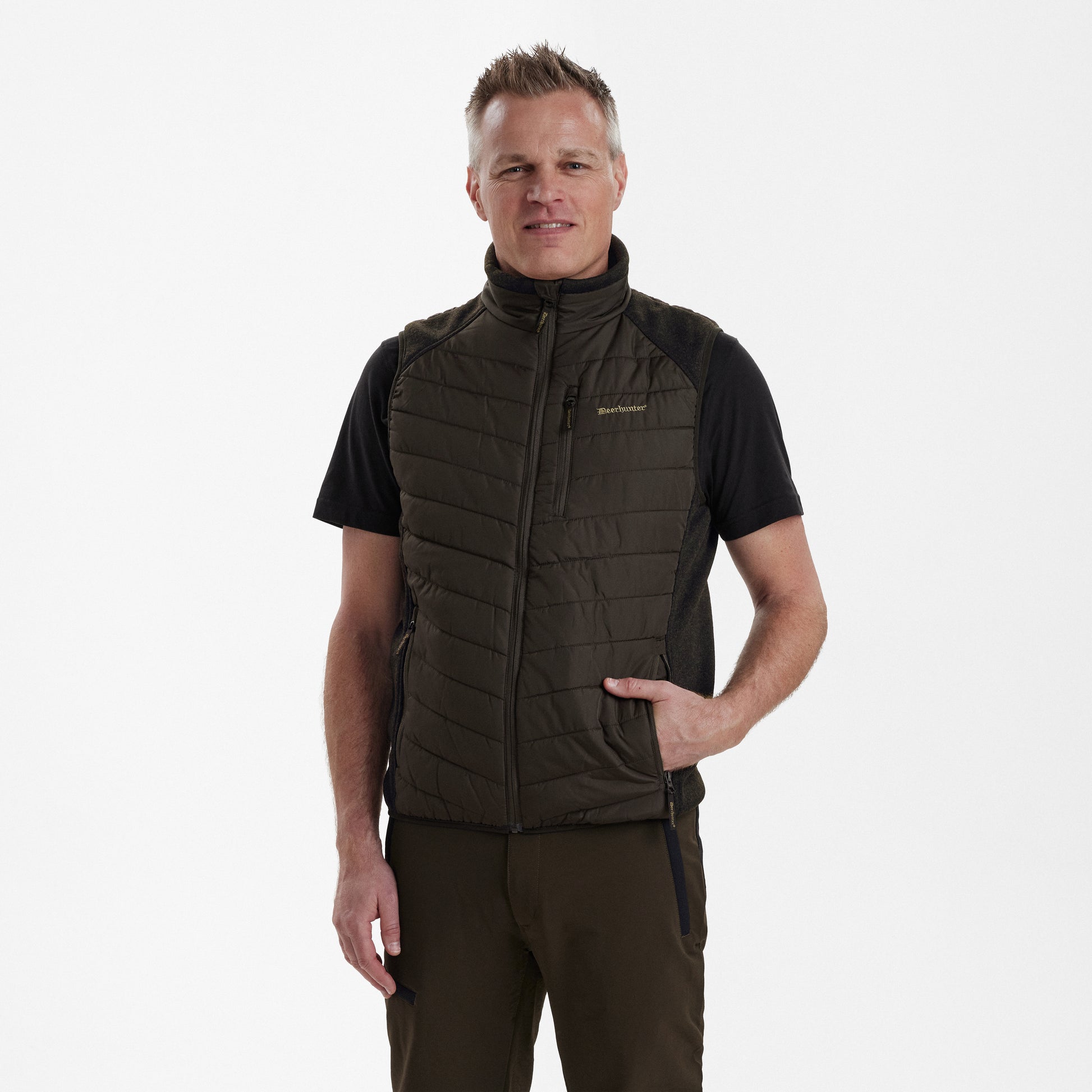 Tyg med stretch vid axeln och i sidopanelerna ger DEERHUNTER Moor Padded-västen extra hög komfort och bra passform. Elastiska kantband vid ärmhålen och längst ner säkerställer en perfekt silhuett. DEERHUNTER Moor Padded-västen är otroligt varm och mjuk tack vare Deer-Tex® Temp-fodret, vilket gör den perfekt för användning under våren och sommaren.