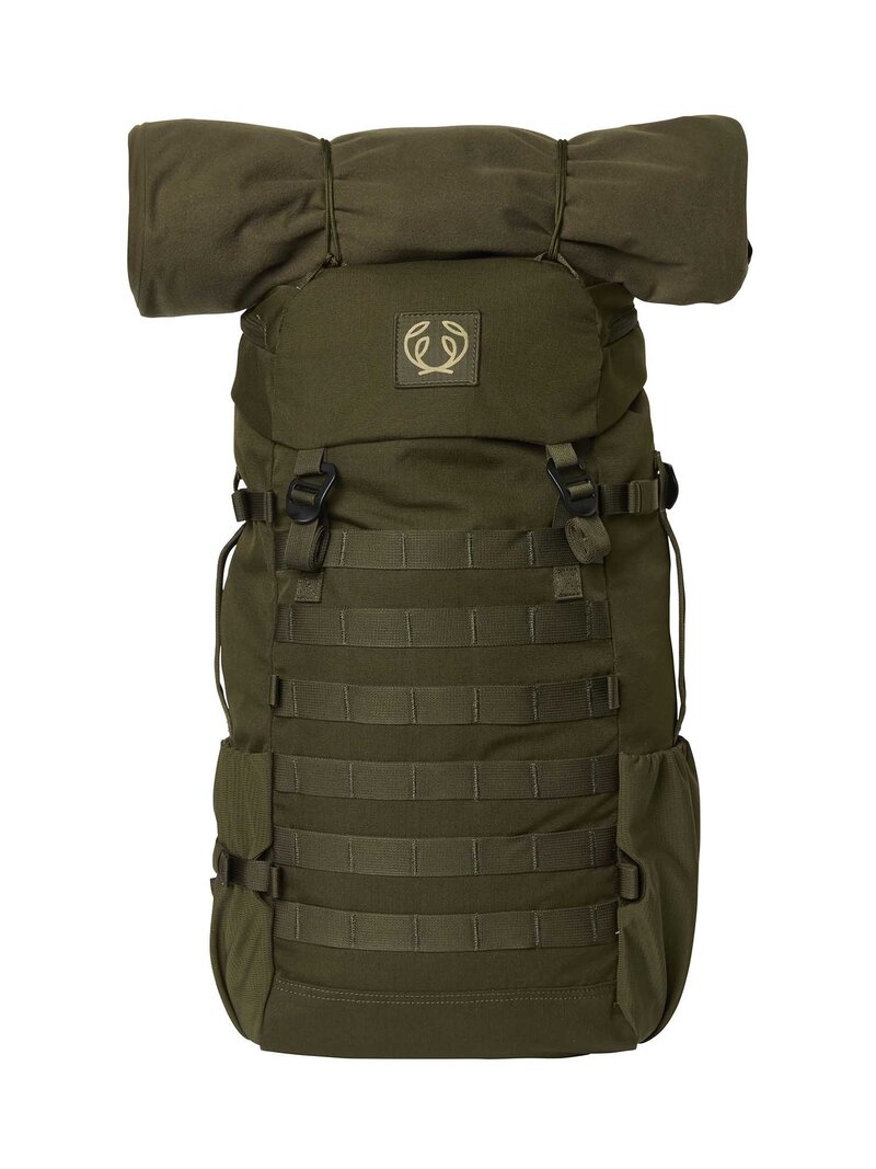 Ranger Day Pack 2.0 30L är en teknisk, mångsidig och noggrant designad ryggsäck som passar lika bra för jakt som för vandring och kortare utflykter. Med sin volym på 30 liter rymmer den allt du behöver för en dagstur – eller upp till tre dagar i fält – inklusive klädombyten, mat, första hjälpen-kit, sovsäck och lättare friluftsutrustning. Ryggsäcken är tillverkad i en slitstark och vattenavvisande återvunnen polyester och är utrustad med funktioner anpassade för jakt och aktivt friluftsliv. Genomtänkta funktioner för jakt och friluftsliv: PALS-fästen på utsidan – gör det enkelt att fästa extra utrustning som t.ex. Yxa, kniv eller sovsäck Tyst design – ljudlösa spännen och slimmade axelremmar underlättar vid anläggning av vapen Tvåvägsdragkedja – ger snabb åtkomst till innehållet från både topp och botten Smarta fickor - flera innerfickor inklusive plats för vattenbehållare (hydration bladder), nyckelhållare och termosfickor Utvändiga meshfickor – lättåtkomlig förvaring för mindre föremål Öglor under topplocket – fäst t.ex. en jacka utanpå väskan Snölås på topplocket - håller packningen torr i alla väder Tre bärhandtag – smidig hantering från flera håll Inbyggd visselpipa i en av spännena Midjebälte med justerbar omkrets upp till 113 cm – avlastar vikten effektivt Vikt: 1,3 kg – lätt nog att bära bekvämt över längre sträckor Ranger Day Pack 2.0 är ett hållbart val för jägare, frilufts- och outdoorentusiaster som ställer höga krav på funktion, bärkomfort och smart förvaring. Med sin tåliga konstruktion och genomtänkta detaljer är den ett självklart val för dig som vill ha en pålitlig ryggsäck som håller – år efter år.